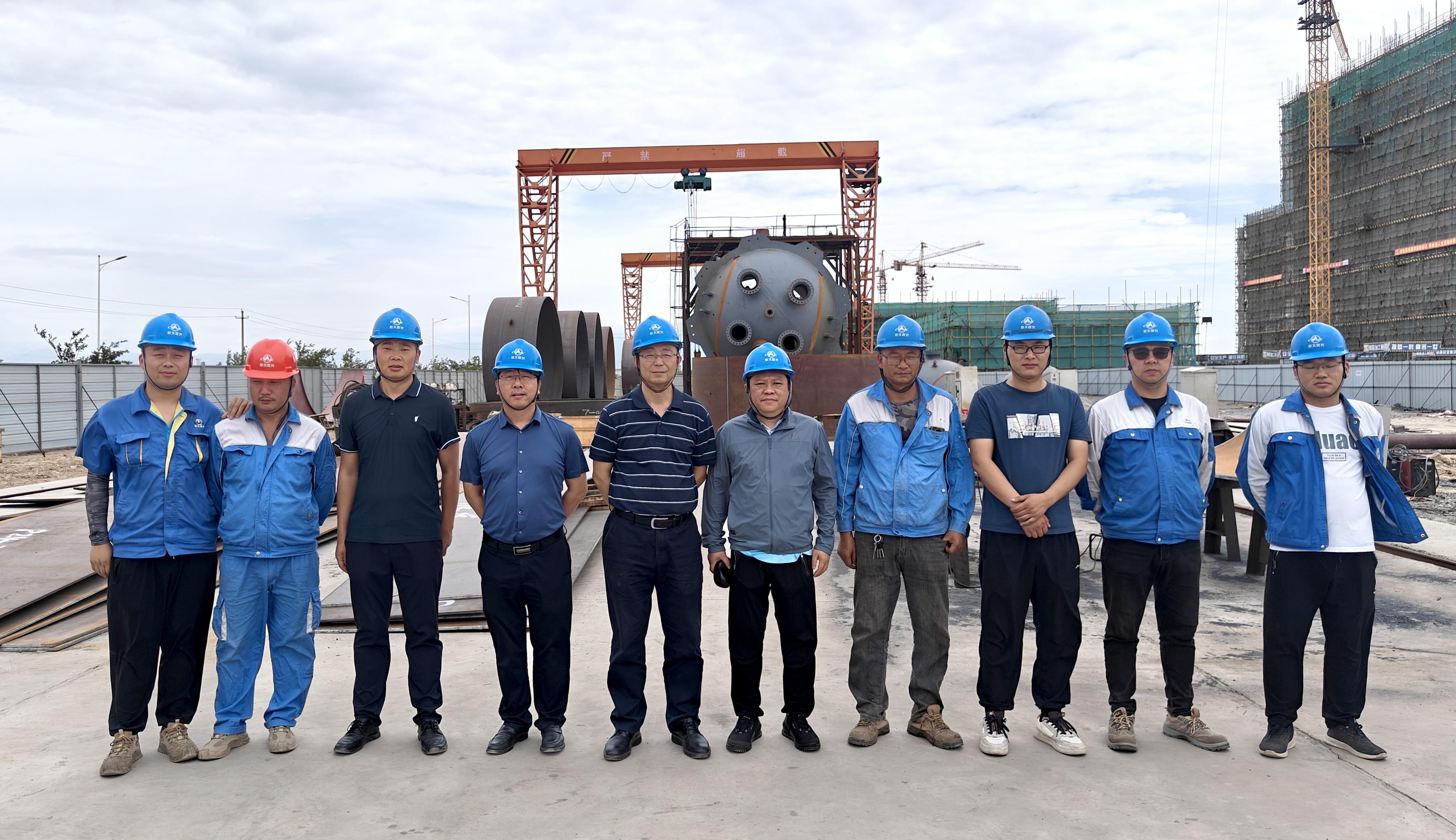 近日,航天晨光黨委委員、副總經(jīng)理王鐳深入新疆中能綠源哈密給料罐項目現(xiàn)場開展安全生產(chǎn)檢查、調(diào)研項目建設(shè)情況,同時對高溫下?lián)屔a(chǎn)、促發(fā)展的一線職工送上關(guān)心與慰問,化機分公司相關(guān)領(lǐng)導(dǎo)陪同。