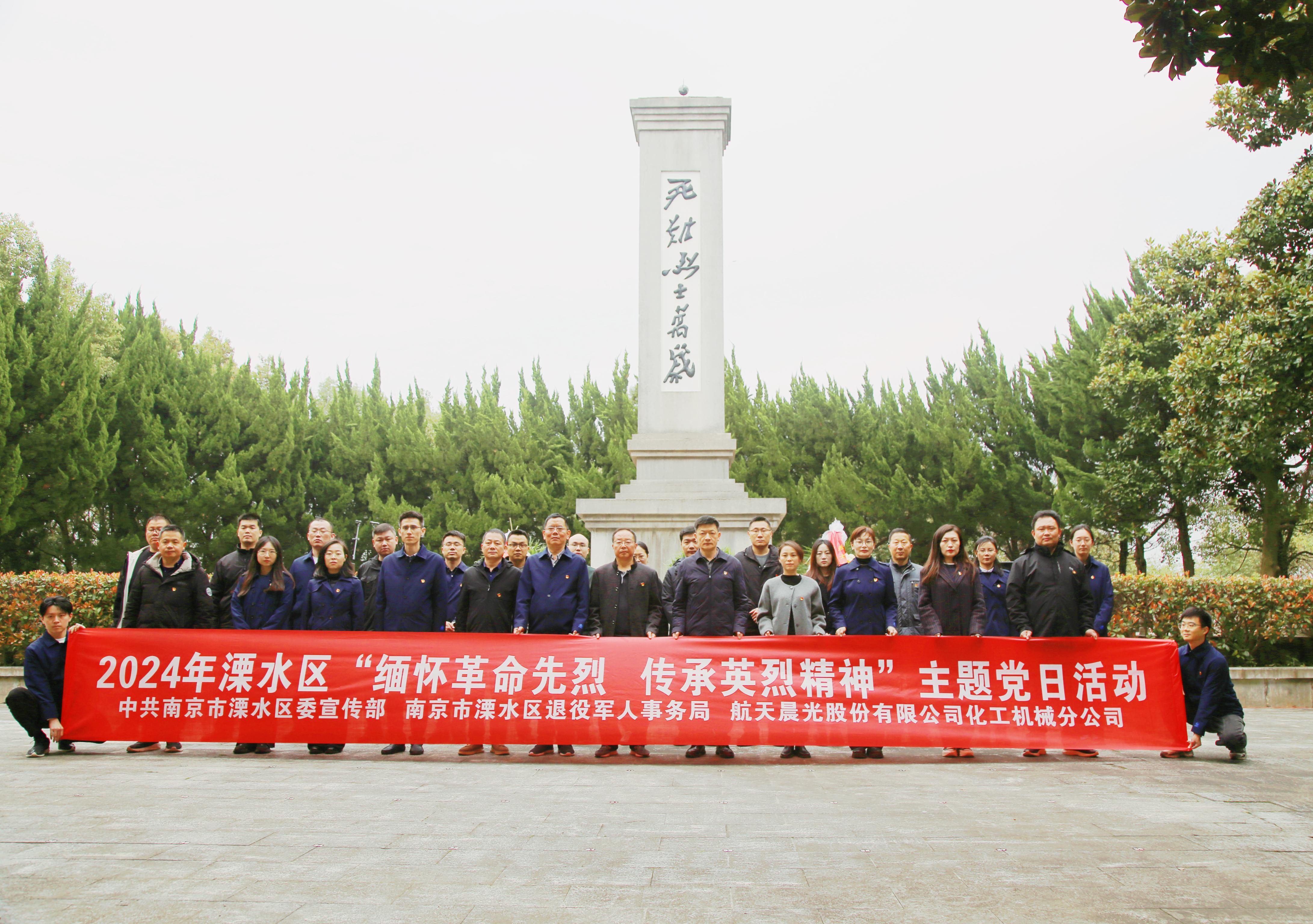 近日,化機分公司黨委與溧水區退役軍人事務局簽署了黨建結對協議,共同開展清明祭掃暨“緬懷革命先烈,傳承英烈精神”主題黨日活動,通過黨建聯建搭建教育平臺,構建黨建資源共享的共建共贏機制,持續鞏固拓展主題教育成果。分公司黨委書記儲志軍、紀委書記翟靜、所屬黨支部委員及黨員團員代表共20余人參加了此次活動。